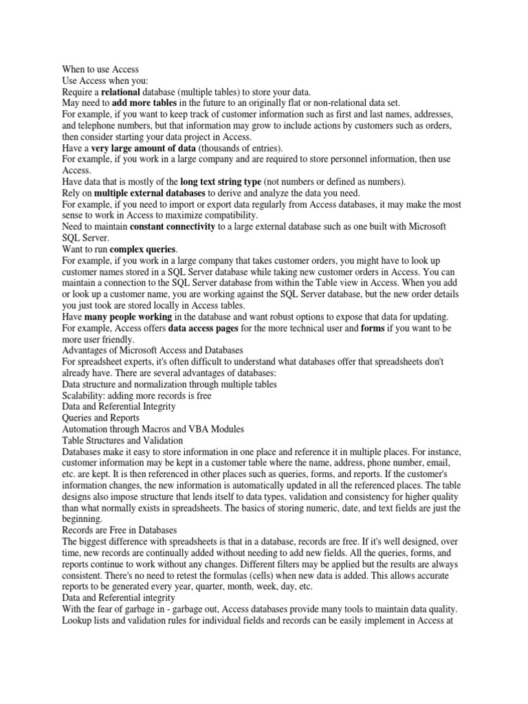 Excel Spreadsheet Vs Access Database. I think Richard makes some excellent points. With a database, you would simply upload the raw data from the billing system (assuming it comes out in database format) into a database.