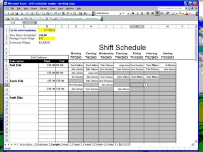 Employee Shift Scheduler for Excel,affordable spreadsheet ...